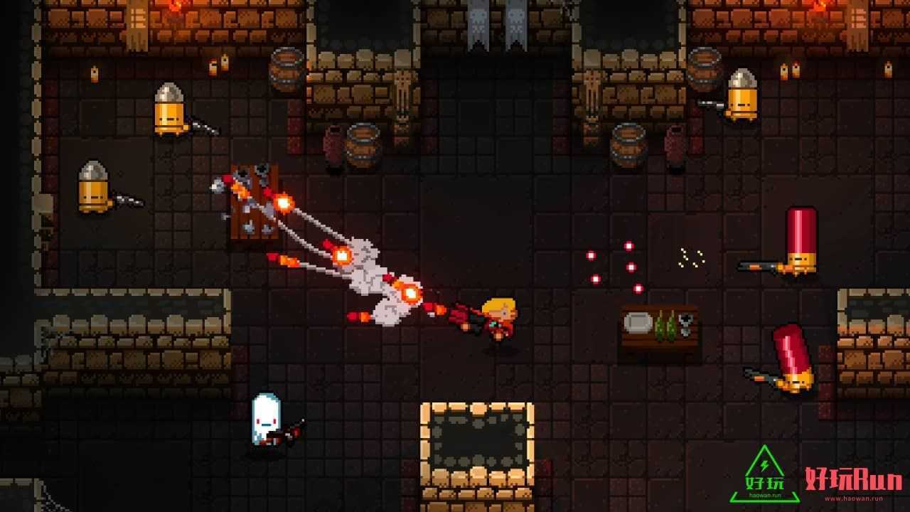 (2)细节表现到位,罐子,书堆这些都可以碰撞打碎,桌子可以推翻当作临时掩体(怪物也会这么做),boss登场很酷炫,有种浓浓的街机风格,boss登场跟玩家一起来一个特写,超赞。